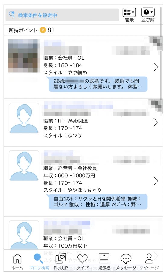 そうするとあなたの指定した条件で『同性愛のパートナー』を探している男性(女性)の候補がズラッと出てきます。