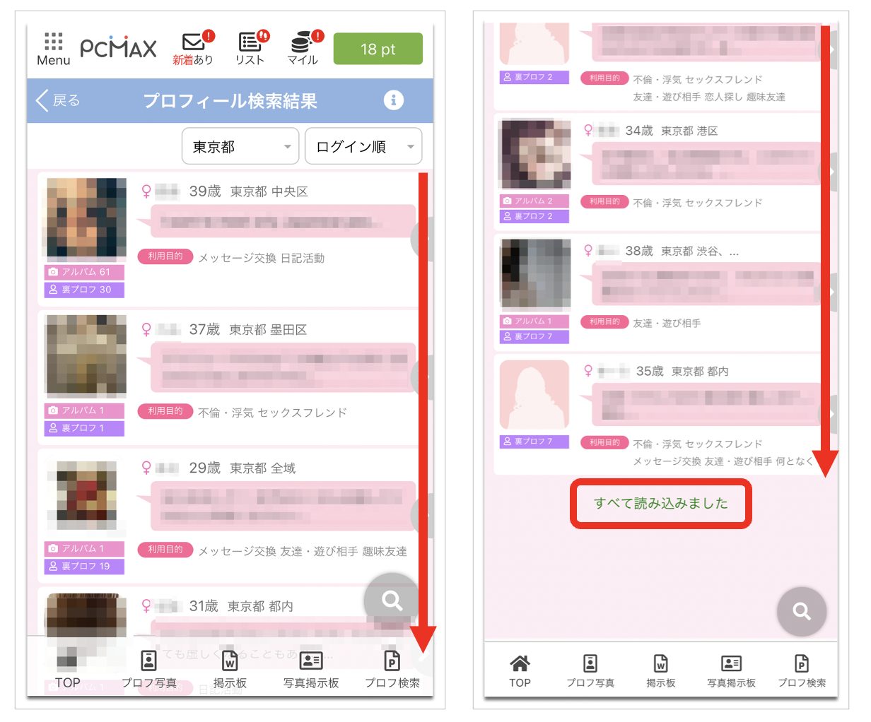 すると東京都に在住のPCMAXの専業主婦(既婚者)の利用者のリストが表示されます。