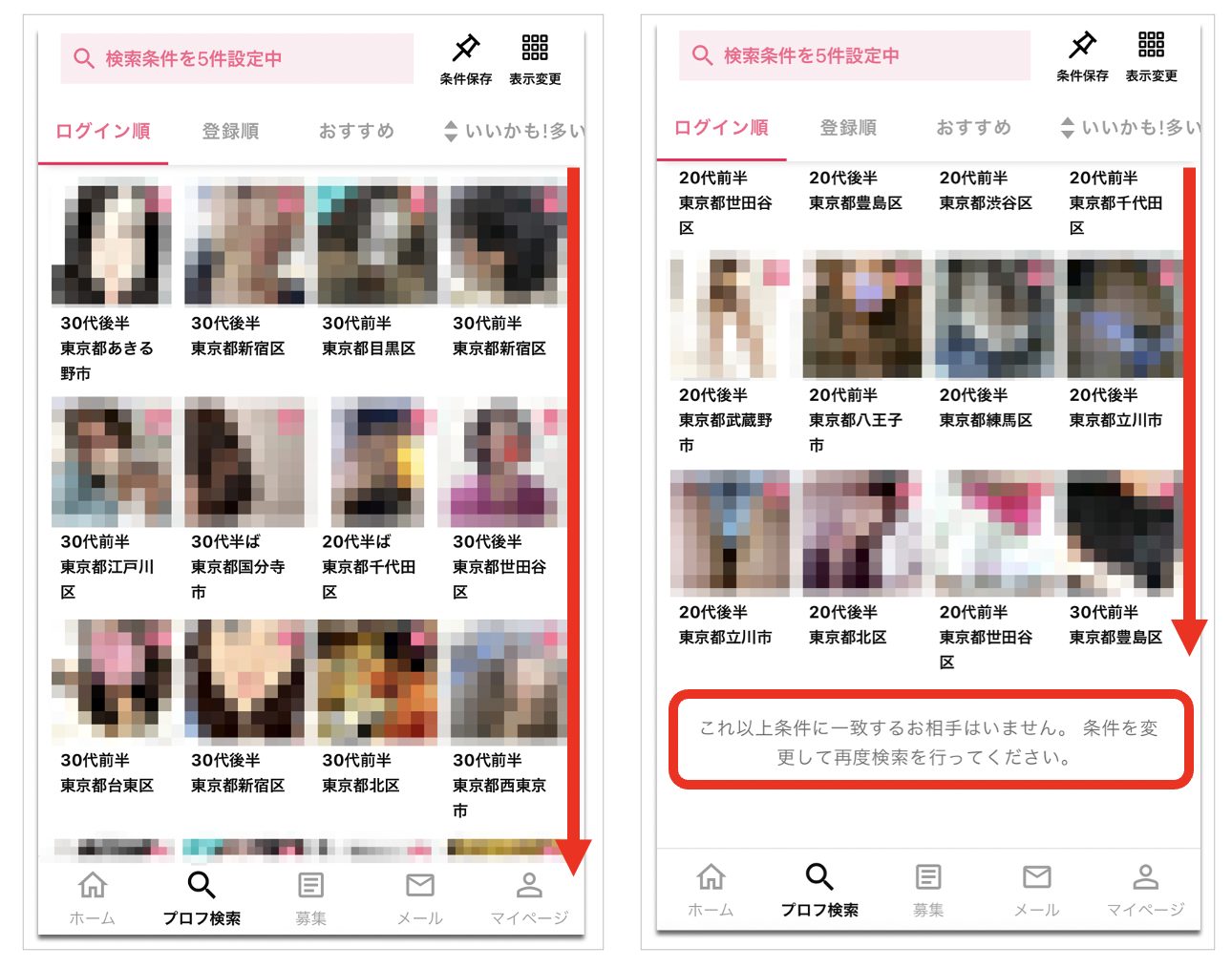 ずっと下にスクロールして、全部で何件あるかをカウントすると、PCMAX利用の専業主婦の数は135件でした。