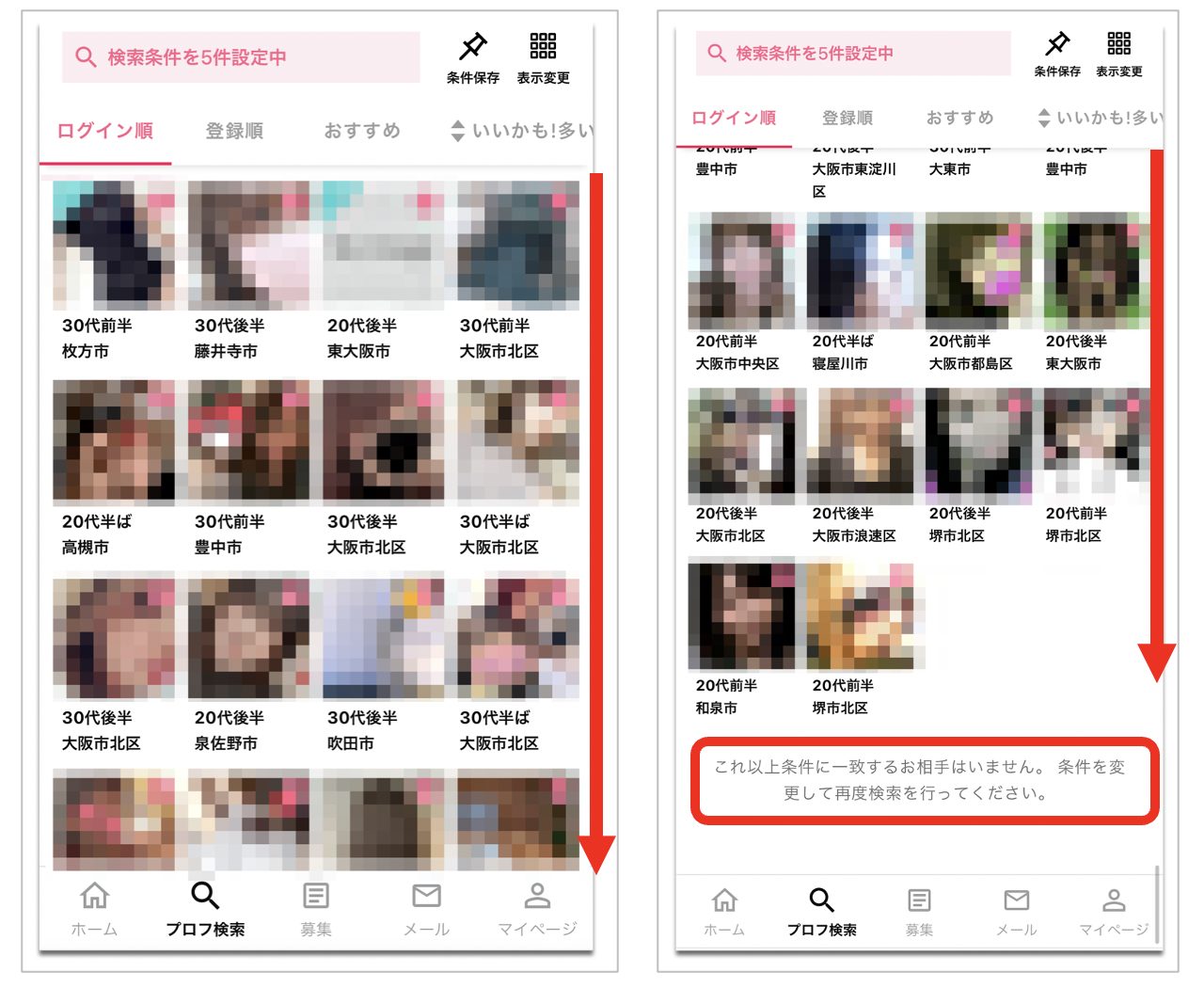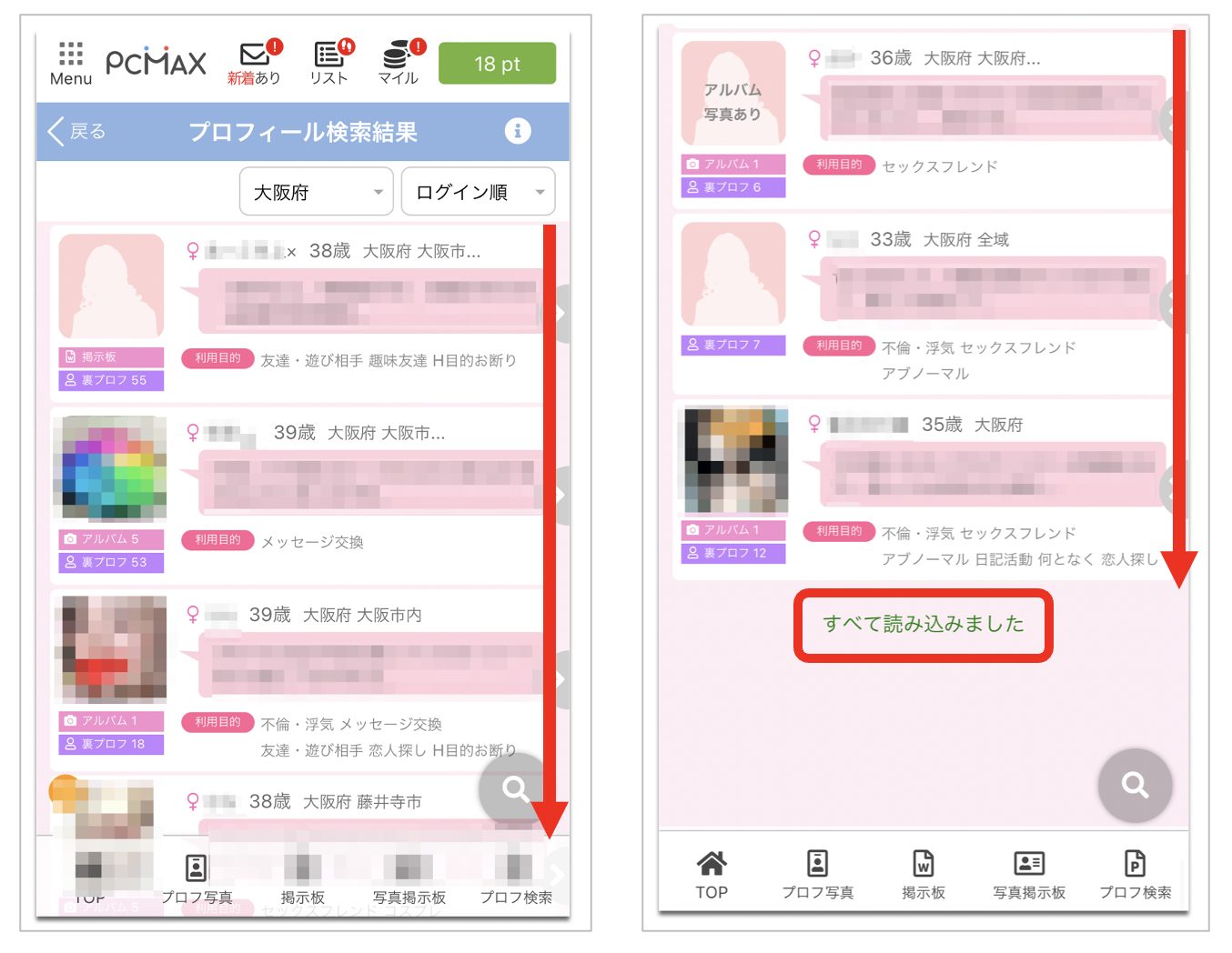 同様に大阪に在住の専業主婦のPCMAXの利用者のリストが表示されます。