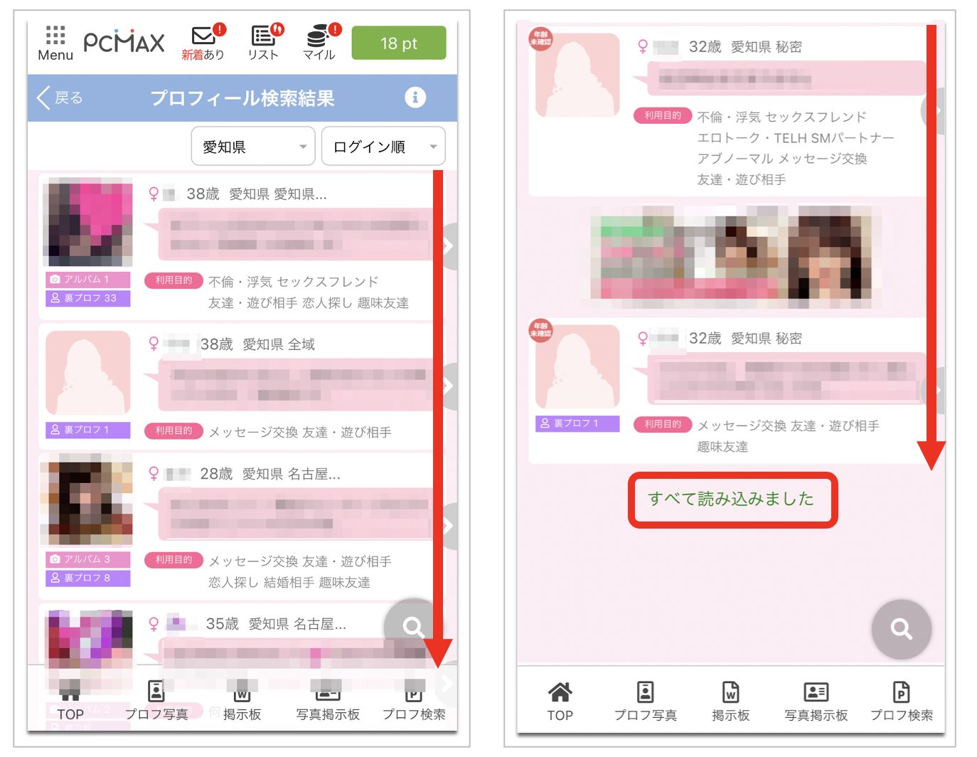 同様に愛知に在住の専業主婦のPCMAXの利用者のリストが表示されます。