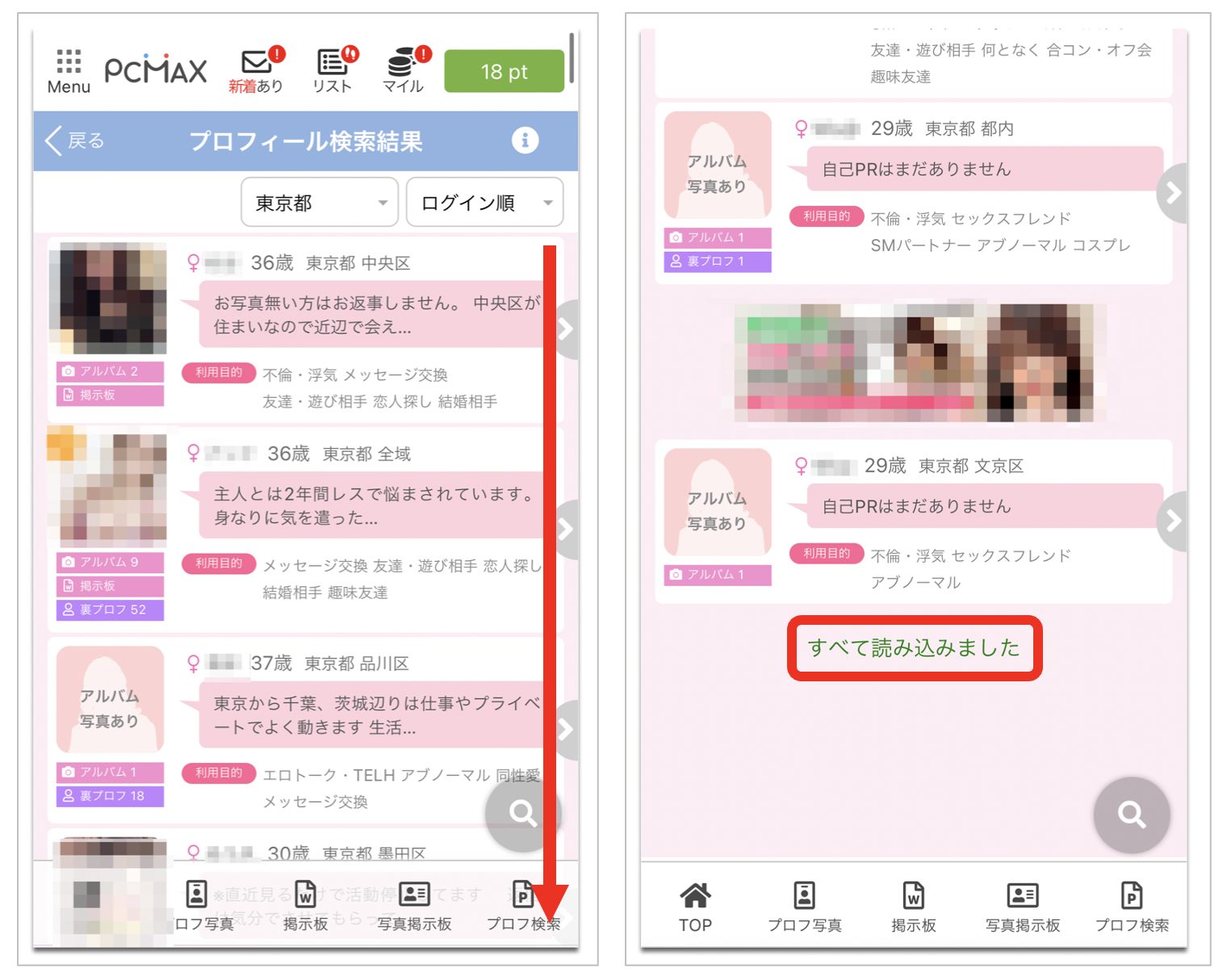 すると東京都に在住のPCMAXの既婚者の利用者のリストが表示されます。