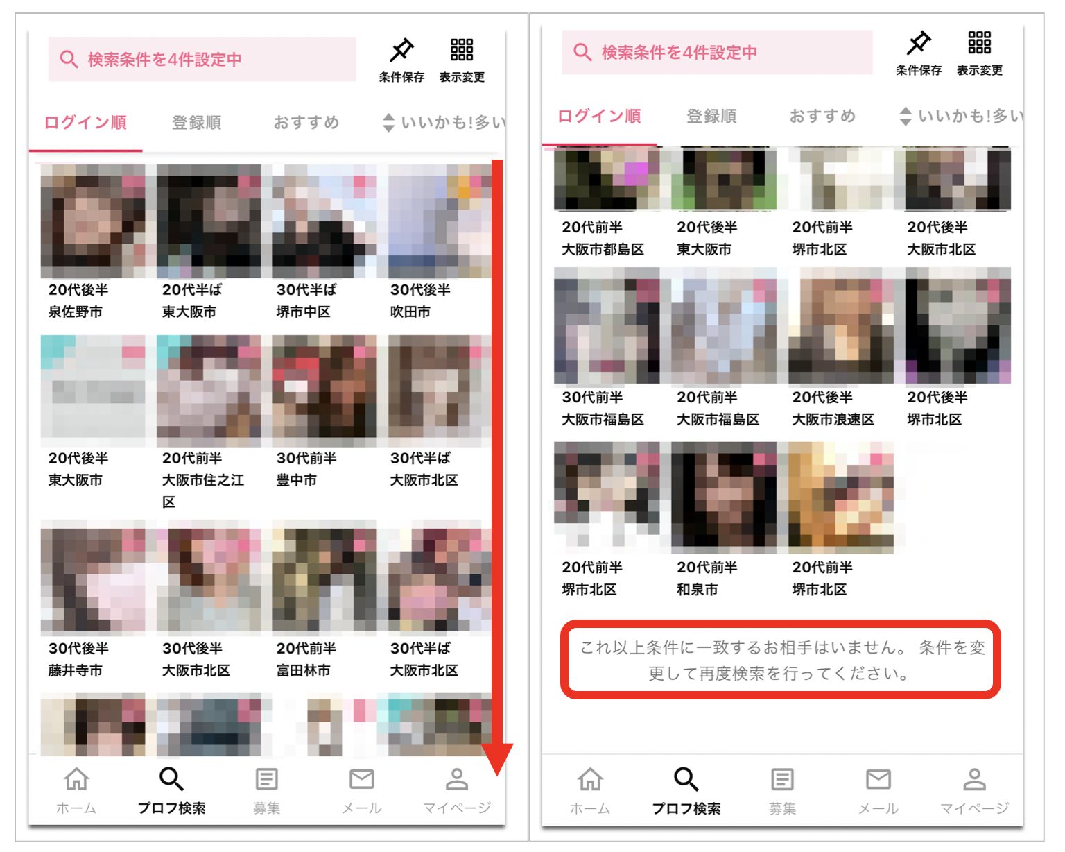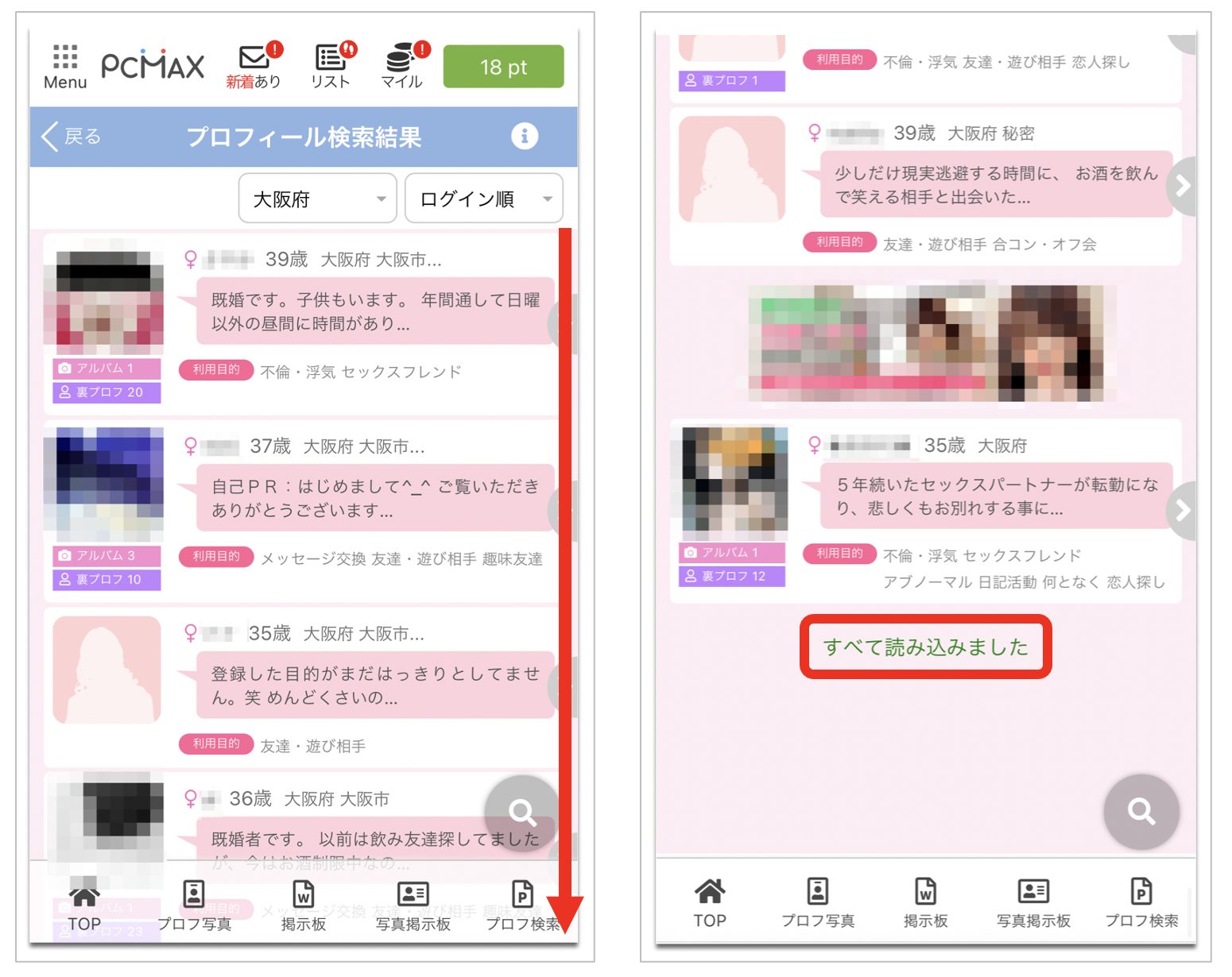 同様に大阪に在住のPCMAXの既婚者の利用者のリストが表示されます。